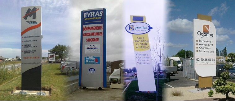 Pose de TotemsPPGO assure aussi la pose de tous les "totems" publicitairesLe totem est un support publicitaire qui véhicule votre image en zones industrielles ou commerciales en extérieur. Complémentaire de l'enseigne, il assure une bonne couverture visuelle de par sa forme tubulaire. Il peut aussi être un excellent support publicitaire devant votre bulle de vente. Multiples fabrications, propositions (galbé ou plan)et tailles existent. Les structures des supports en tube, poteaux galva, acier laqué ou galvanisé nécessitent l'intervention d'un véritable spécialiste pour que dans le temps votre support resiste aux attaques des intempéries. PPGO assure la pose des diverses possibiltés qui s'offrent à vous. PPGO intervient sur les Pays de la Loire et plus généralement le Grand OuestNotre secteur d'intervention est très vaste et notre camion atelier nous permet de nous déplacer avec tout ce qui est nécessaire à un travail sérieux et rationnel. Nous respectons, les délais d'exécution, pour peu que toutes les conditions et autorisations soient finalisées. PPGO respecte l'environnement et les normes imposées.Les implantations sont régies par des lois très strictes qui concernent à la fois, les normes de champs d'éxécution et le respect de la pollution visuelle. Nous n'installons que des produits respectant ces critères, car il faut prendre en compte en aval les besoins de recyclage de ces matériaux. Contactez PPGO au 06/13/10/16/04